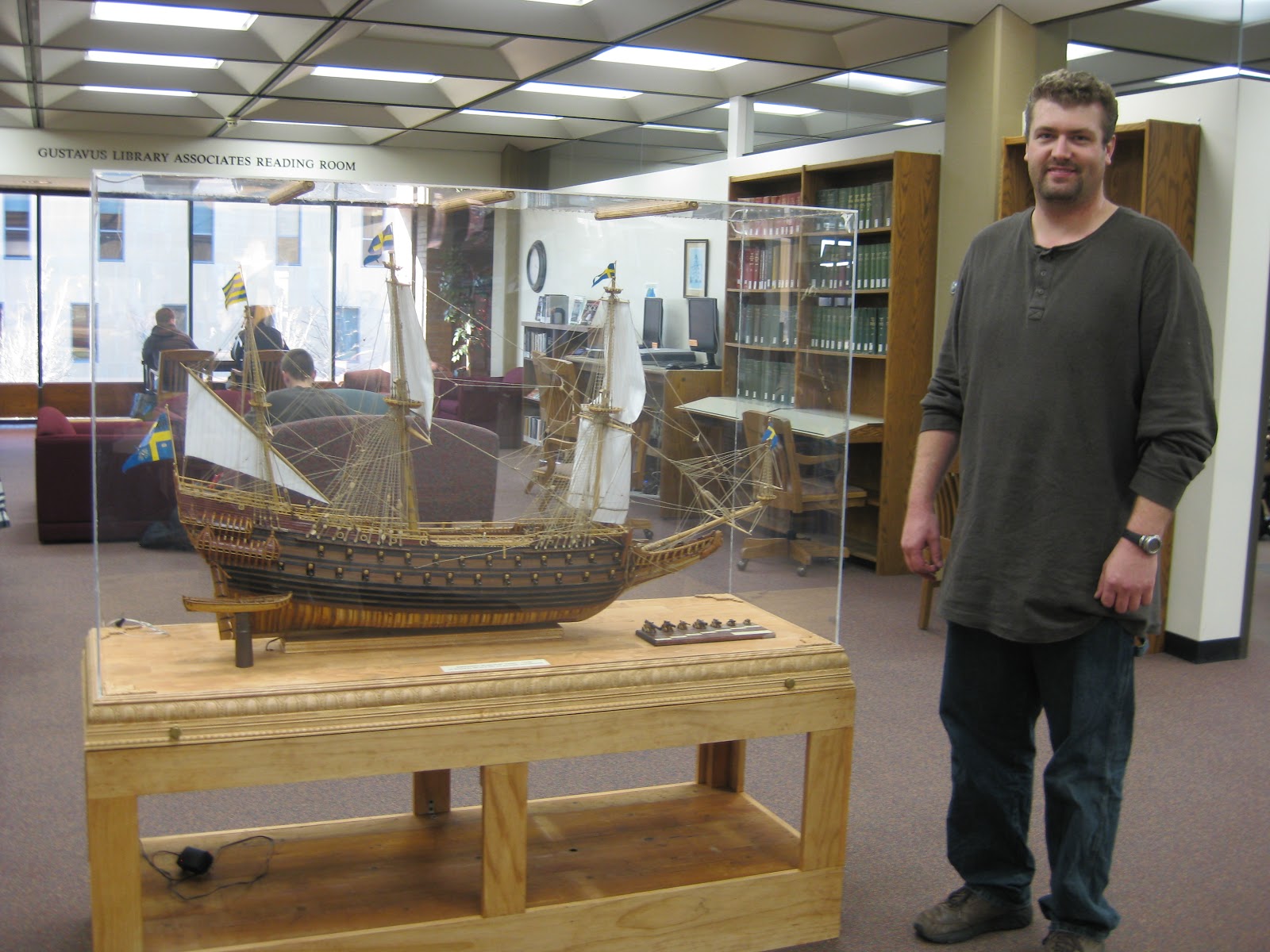 There is now a miniature representation (1:50 scale) of the Vasa built from scratch by Clayton Johnson from Albert Lea, MN on display in the library. As Clayton made many trips to Sweden conducting research at the Vasa Museum, this model is the most accurate replica of the original.